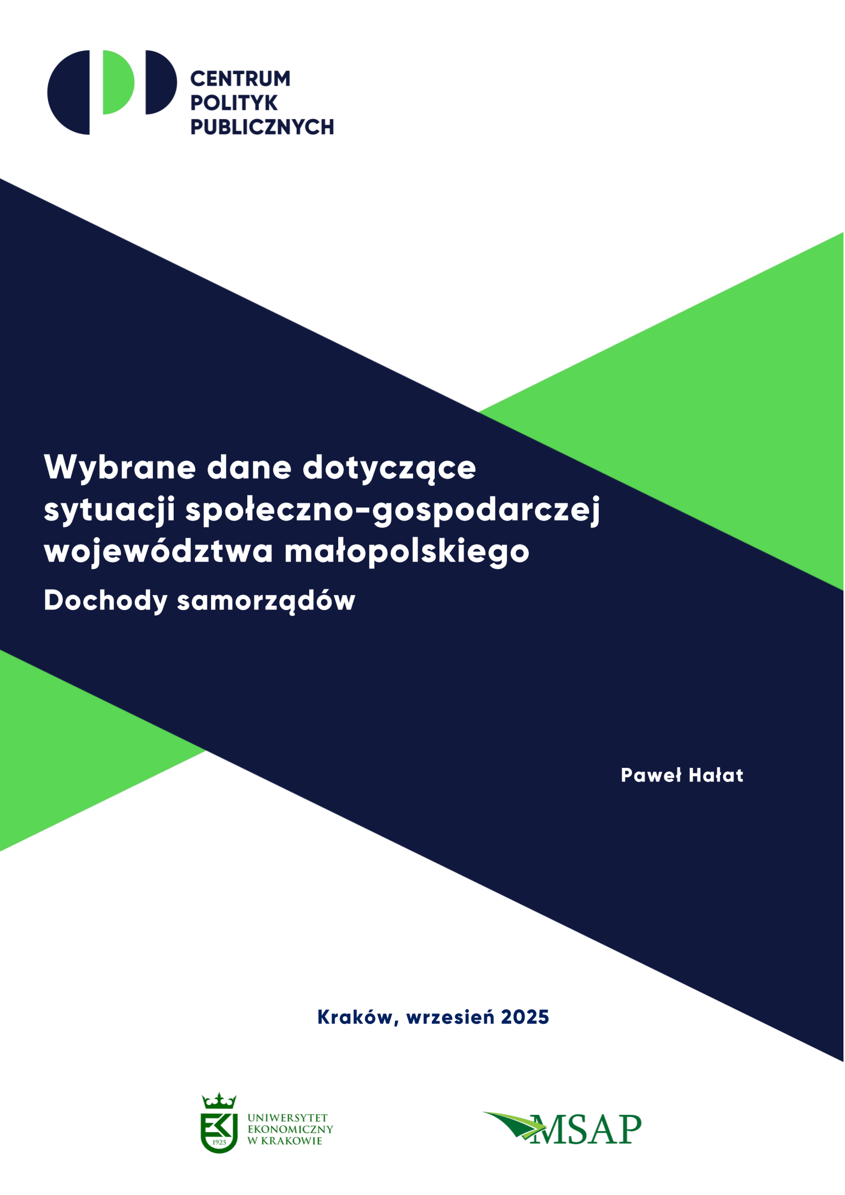 Dochody budżetów małopolskich gmin w 2024 r. osiągnęły wartość 28,9 mld zł – 130% więcej niż dekadę wcześniej. Udział dochodów własnych utrzymuje się na podobny poziomie ok. 50%. Dochody budżetów gmin na mieszkańca są w Małopolsce stosunkowo niskie na tle innych regionów – w 2024 r. dochód per capita był niższy niż średnia dla kraju, stosunkowo niska była także dynamika dochodu per capita (wykres 8). Zbliżony do średniej dla kraju był udział dochodów własnych gmin w budżecie.